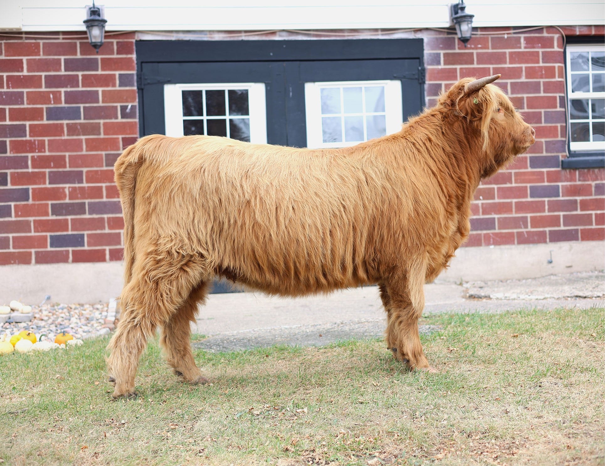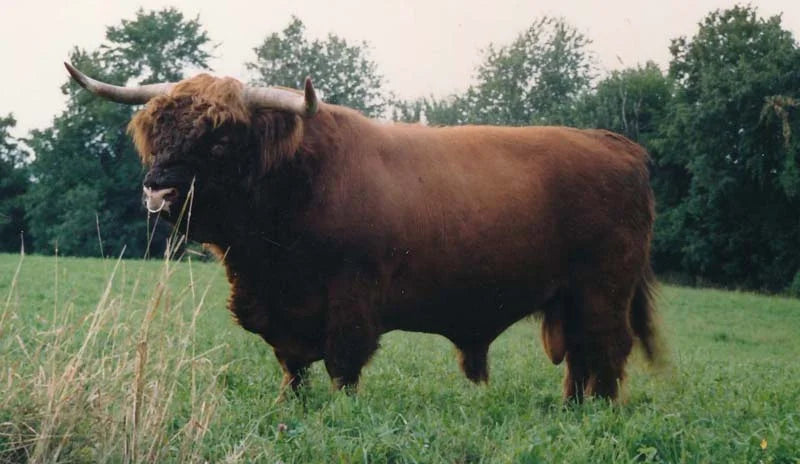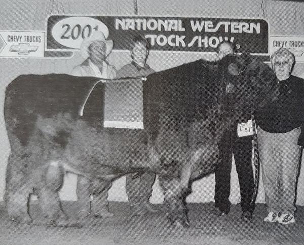 GOF Broadstone 13B was a powerful white bull who originates from the famous Glen Osprey Farms (GOF) of Ontario, Canada. Broadstone is also your 1994 NWSS Champion Bull. (Denver, CO. USA) Glen Osprey Farms imported many cattle directly from Scotland over their many years of breeding. You can see this Scottish influence in Broadstone's pedigree. Broadstone's offspring were known to be fast growing as Glen Osprey Farms had their own bull growth testing station and culled for fast growth, large ribeye and exceptional cattle. One of Broadstone's most well-known sons is Broadstone the 18th of Stoncliffe, a bull who was 953 lbs. at one year old and was the 2000 AHCA ROE Bull of the Year.
