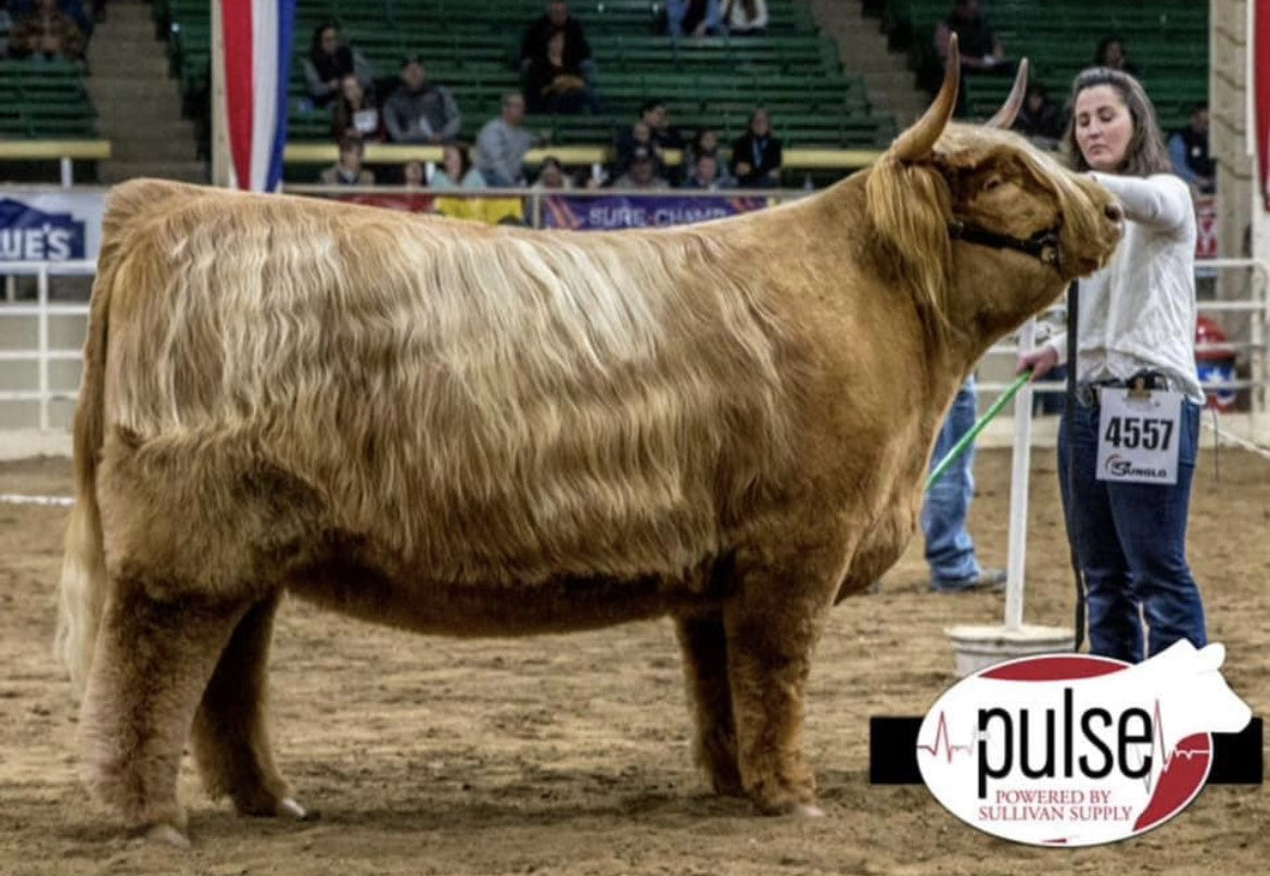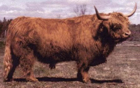One of the most influential bulls in the world, this Canadian bull is found in the back of a lot of US pedigrees, and for good reason... not only has he produced a multitude of champions at the NWSS, but Gusgurlach of Windrush has been shown greatly improve feet in his offspring. "Gus" is very correct and produces wide animals with a lot of volume. He has good muscling and adds a lot of Scottish Highland character. Gus's sire, Iain Mor of Glenquoich, was a direct Scottish Import and staple sire to the breed in his time. Glenquoich cattle were built to be sustainable in the rocky, rugged terrain of Scotland and bring functionality and longevity to today's more modern genetics. Gus's dam brings more UK imported genetics to the table with a touch of the legendary GOF lineage. This is the ultimate outcross of genetics from around the world all wrapped up in one well-muscled and bold package.  Gus' offspring are moderately framed and are ready to work for you.