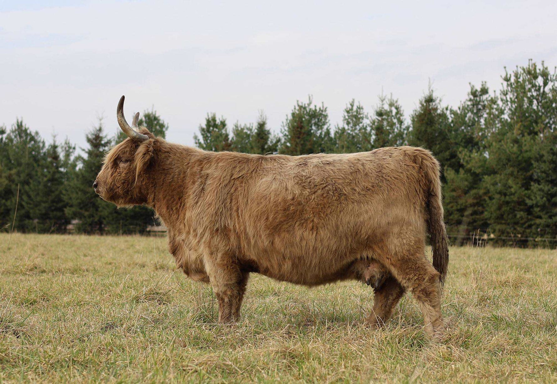 Your 2023 National AHCA Champion Bull.  STR Encore weighed 1,822lbs with a ribeye of 18.3 inches at the show in January 2023.  He is long, extremely wide, and absolutely correct.  Plus, this Athletic bull walks like a cat, absolutely correct in every movement.  His scrotal circumference is 43 cm (Feb 2022).  He is the full brother of STR Revolution, a NWSS National Champion Bull.  His mother is a three-time NWSS National Champion Female, STR Enchanted.  His father is STR Ruthless Game, who was a NWSS National Champion Bull and whose sire was a Australian National Champion.   Wow, can you pack more powerful genetics into an animal!  To top it off, this Brindle boy is cool, calm, and collected on halter and loves to be brushed.  He brings the whole package on what you want to have when selecting a bull.  This is not only an outstanding Highland bull, but an outstanding bull, no matter what breed. Find more information about Encore's Lineage and Offspring Here