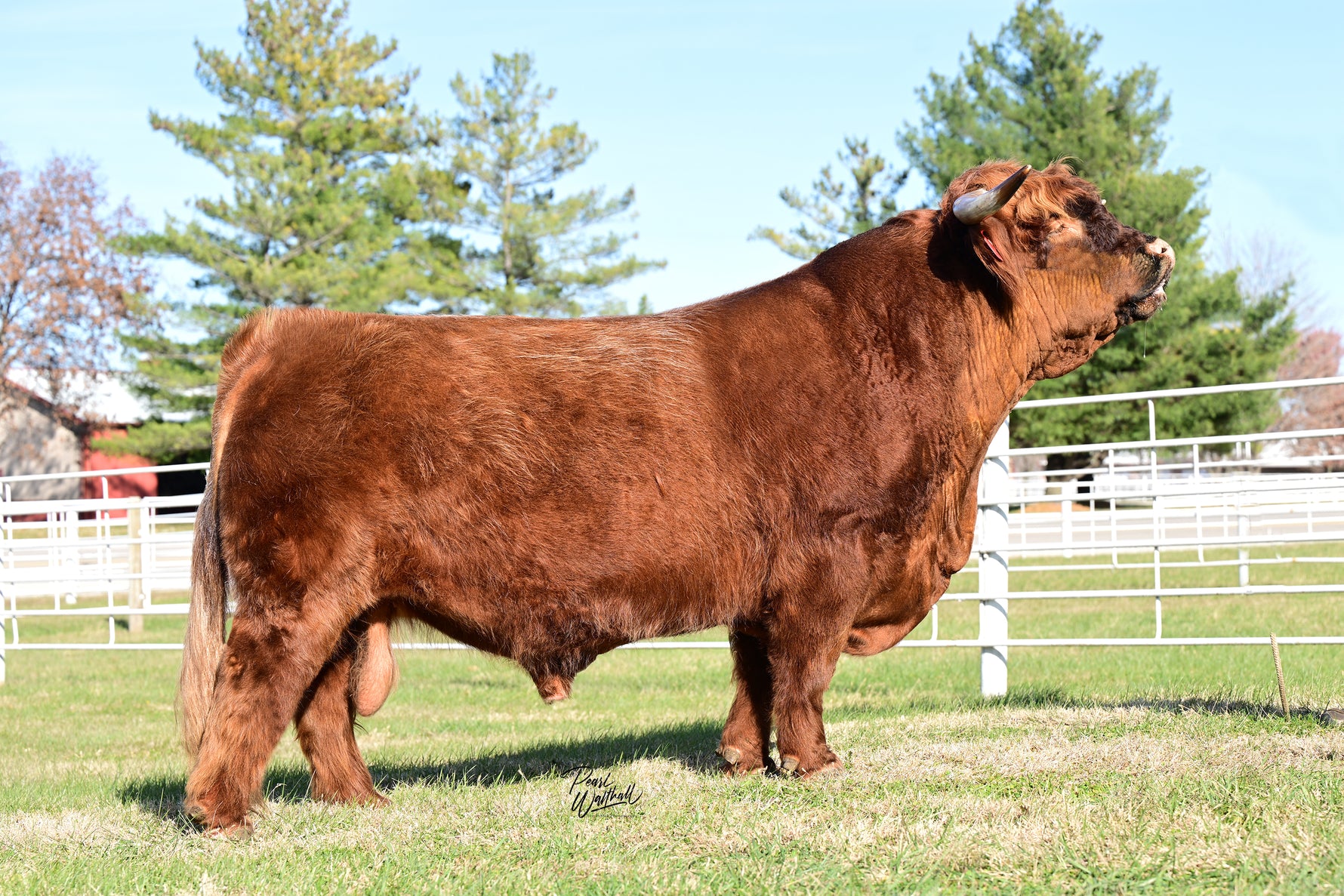 Proven. Powerful. Pedigree. DH Premier is here! Sired by the 2016 NWSS Reserve Champion Bull, STR Optimus Prime, a Gusgurlach of Windrush son. Premier is out of STR Elevation, who is by Trafalgar Sampson II. Sampson was also the sire to the 2012 ROE Show Bull of the Year, Trafalgar Xerxes. DH Premier is quite literally one of the last registered animals from the famous Drover Hill Farms. Two bull calves were registered from them in 2017, and Premier was one of them. True to the classic Drover Hill Fashion, Premier takes depth and width to a whole new level. He sits on a thick-made leg and good foot. A deep heart girth and a strong hip. You won't be shorted on substance here. His calves are thick and mature into moderate frames. Be sure to look up Four T Acres, Fixin' to Farms, and Schon Boden Farms. As they all love/ed him and his calves! You'll be signing up for longevity too, as not many bulls can look this good pushing 10 years old. Here's your chance to get your hands on some of the very last of these prime & "premier" genetics.